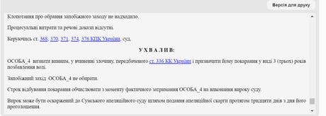 Об этом сообщает ТСН.ua во вторник, 4 июня, ссылаясь на приговор Конотопского горрайонного суда Сумской области.